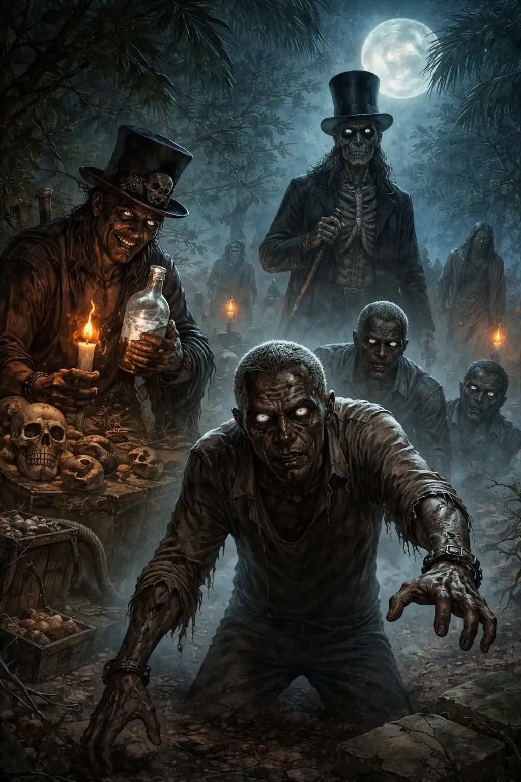 Nella tradizione vudù haitiana, lo zombie è un individuo a cui, attraverso la stregoneria, viene sottratta l’anima o la coscienza. Il suo corpo, pur continuando a vivere o tornando apparentemente in vita, non appartiene più a se stesso, ma diventa strumento del suo padrone. Questa trasformazione viene attribuita al Bokor, una figura della magia rituale che, secondo la credenza popolare, sarebbe capace di evocare i morti, lanciare malefici e perfino ridurre un essere umano in uno stato di totale sottomissione.