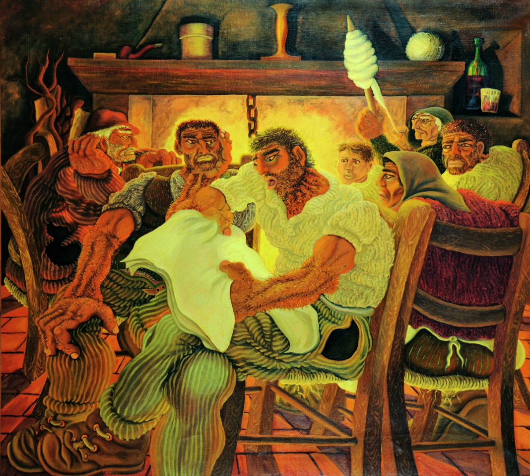 Rielabora e addolcisce, ma la deformazione delle immagini e dei soggetti custoditi nella sua memoria non è grottesca o caricaturale, tantomeno naïf; è invece un sentire espressionista attraverso il quale l’artista propone un racconto fiabesco che ci spinge oltre all’apparenza.