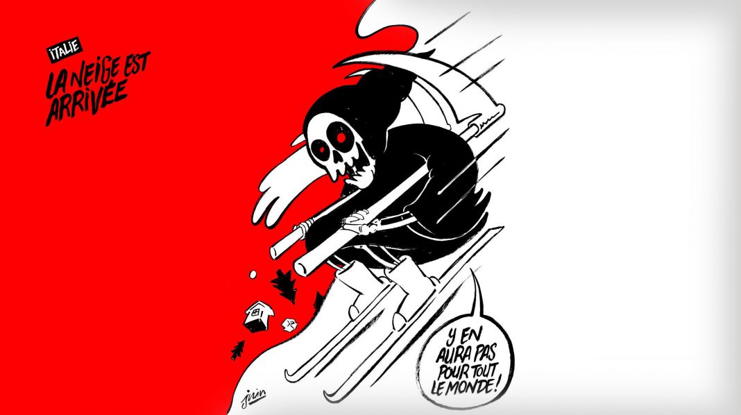 La vignetta di Charlie Hebdo ha fatto girare “le palle” al sindaco di Farindola, Ilario Lacchetta, che ha dato mandato ai suoi avvocati (quanti avvocati ha o le sono occorsi sindaco?) di querelare Charlie Hedbo e gli autori della vignetta satirica che tanto ha sconvolto le menti e l’animo del sindaco oltre che tanti internauti, sensibilissimi alla sgradevole vignetta, mentre sono comodamente al caldo nelle proprie case, dietro uno schermo…