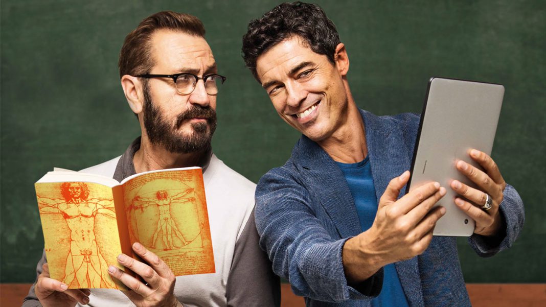 Ernesto e Filippo hanno due personalità agli antipodi e un unico punto in comune: sono entrambi professori di liceo. Filippo è un allegro progressista perennemente collegato al web. Bello e spensierato è un seduttore seriale sui social network. E’ in grado di sedurre anche i suoi studenti grazie a un’app, creata da lui, che rende immediata la soluzione di ogni possibile calcolo. Ernesto è un severo conservatore, rigorosamente senza computer, tradizionalista anche con i suoi allievi, che fa della sua austerità un punto d’onore e vanta una vita completamente al di fuori della rete. E’ probabilmente l’ultimo possessore vivente di un Nokia del ’95. Un tempo erano “migliori amici” ma uno scontro profondo e mai risolto li ha tenuti lontani, fino al giorno in cui si ritrovano fatalmente a insegnare nella stessa classe. I loro punti di vista opposti li portano inevitabilmente a una nuova guerra. Saranno obbligati ad affrontare il passato, che ritornerà nelle sembianze di Nina, una ragazza che li sottoporrà a un semplice esperimento che si trasforma in una grande sfida: Filippo dovrà provare a uscire dalla rete ed Ernesto a entrarci dentro. Questo viaggio li cambierà profondamente, costringendoli a trovare un equilibrio, sempre più raro e delicato ai giorni nostri, tra la coscienza globale di chi si affida alla rete e la totale indifferenza di chi si ostina a resistere a oltranza all’epoca digitale.