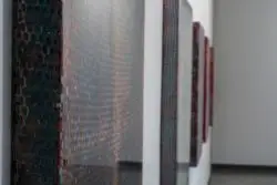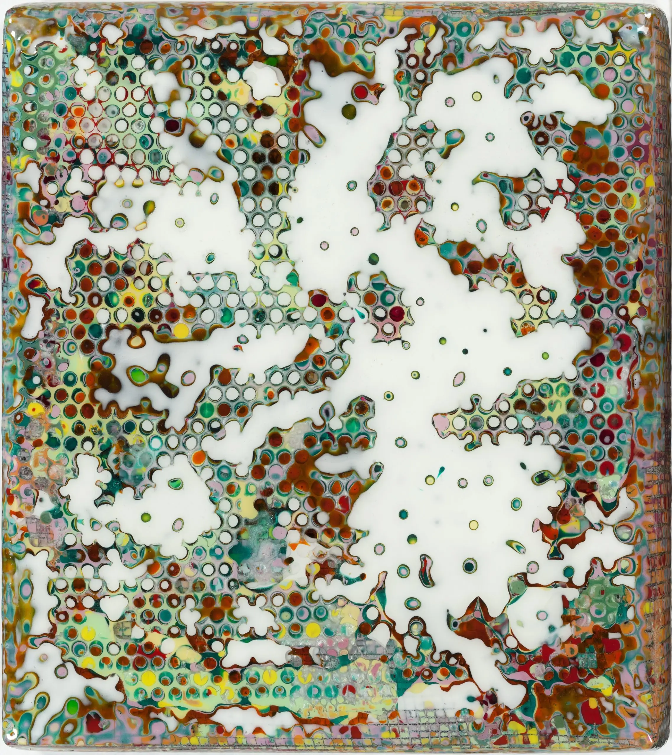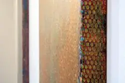 Robert Pan da anni compie un intenso lavoro di ricerca e sperimentazione utilizzando la resina come materia prima delle sue opere. Questo materiale, lavorato con varie tecniche, gli consente di porre al centro delle sue indagini artistiche il valore del colore e della luce, creando opere più simili a oggetti dalla forza vibrante che a tele che impongono la loro presenza nello spazio, da osservare frontalmente quanto lateralmente. L’artista altoatesino plasma in un primo momento i suoi lavori attraverso la sovrapposizione di strati, l’accumulazione di resine e pigmenti. Il procedimento di addizione è poi seguito da uno di sottrazione, che rende il suo operato più simile a quello di uno scultore che a quello di un pittore: seguendo il metodo michelangiolesco di lavorazione dei blocchi di marmo, l’artista “vede” l’immagine imprigionata nelle materia e la libera “per via di togliere”. Gli scalpelli che incidono il marmo sono qui sostituiti da acidi che scavano e bruciano la resina, svelando infine forme e colori sommersi.