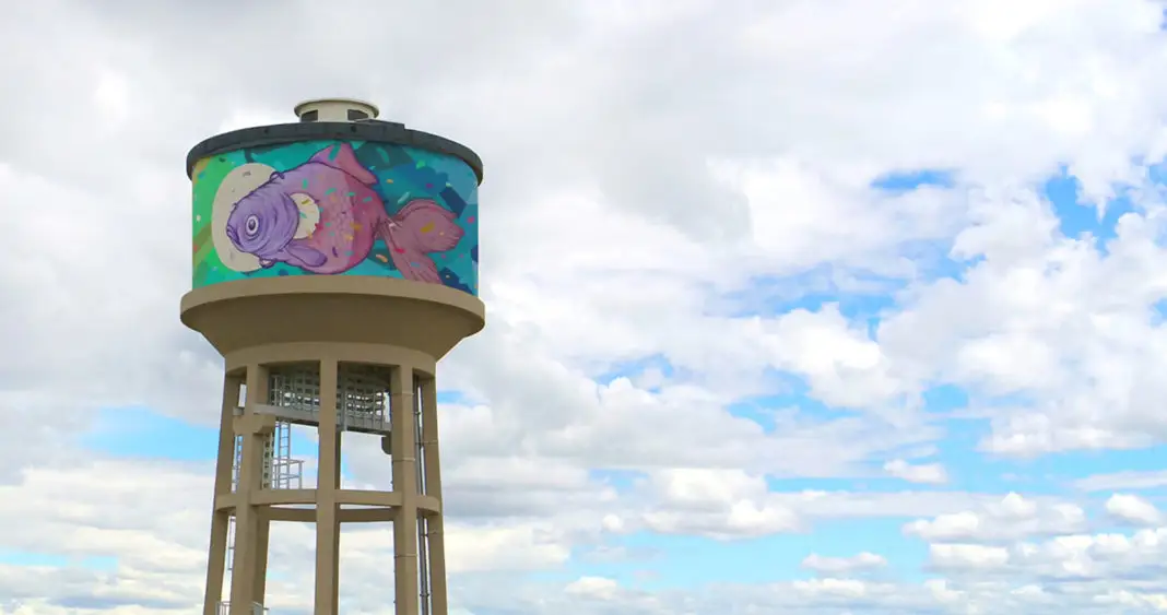 Un pesce d’acqua dolce, un cigno, un martin pescatore. Sullo sfondo, i colori dell’arcobaleno. Un’opera di arte urbana visibile anche da centinaia di metri di distanza, realizzata sul pensile di San Romano, nel Comune di Montopoli in Valdarno, a firma di Giovanni Magnoli, in arte “Refreshink”.