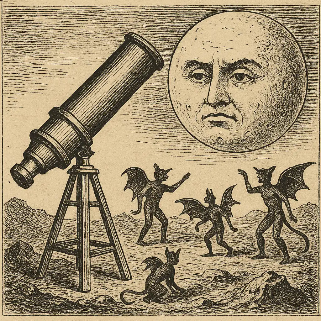 Nell’estate del 1835 il pubblico newyorkese rimase senza fiato di fronte a una notizia che sembrava destinata a cambiare la storia della scienza. Il quotidiano The New York Sun pubblicò una serie di articoli che raccontavano di una straordinaria scoperta: il celebre astronomo John Herschel, grazie a un potentissimo telescopio in Sudafrica, avrebbe avvistato forme di vita sulla superficie della Luna.