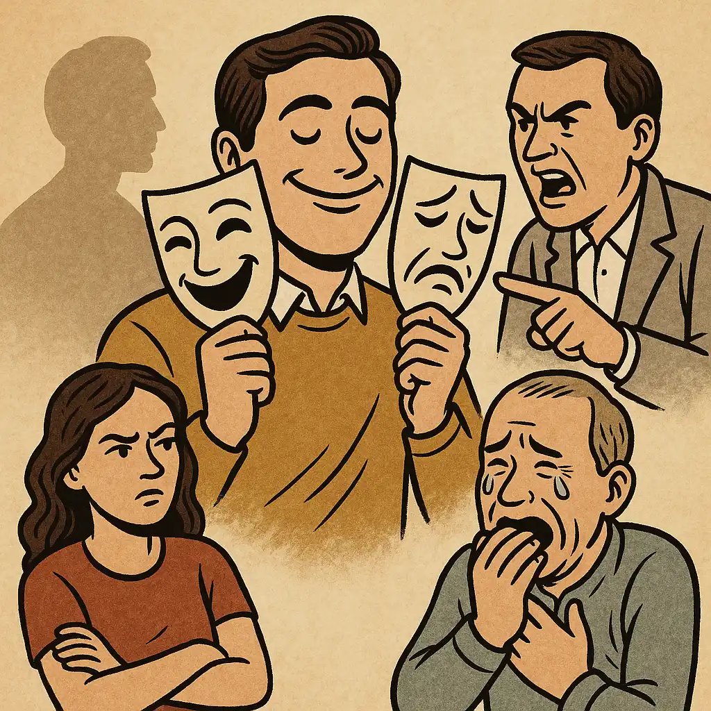 Questa dinamica si manifesta in tanti modi diversi. C’è chi mostra affetto, generosità o altruismo solo in superficie, mascherando con sorrisi e belle parole la propria indifferenza o il proprio tornaconto. C’è chi predica virtù e rigore morale, salvo poi violare sistematicamente le stesse regole che pretende di imporre agli altri, giudicando con durezza le cadute altrui mentre è indulgente con le proprie. Ci sono poi le maschere sociali, che oggi trovano nei social media un terreno fertile: identità costruite a tavolino, narrazioni personali lontane dalla verità ma funzionali a ottenere consenso, visibilità e vantaggi. E quando emergono contraddizioni, anziché assumersi la responsabilità dei propri errori, l’ipocrita preferisce rifugiarsi nelle giustificazioni, accumulare scuse, spostare l’attenzione altrove. È proprio questa costante fuga dalla verità che lo rende inaffidabile: chi mente e si contraddice di continuo non può diventare un punto fermo né una guida credibile.