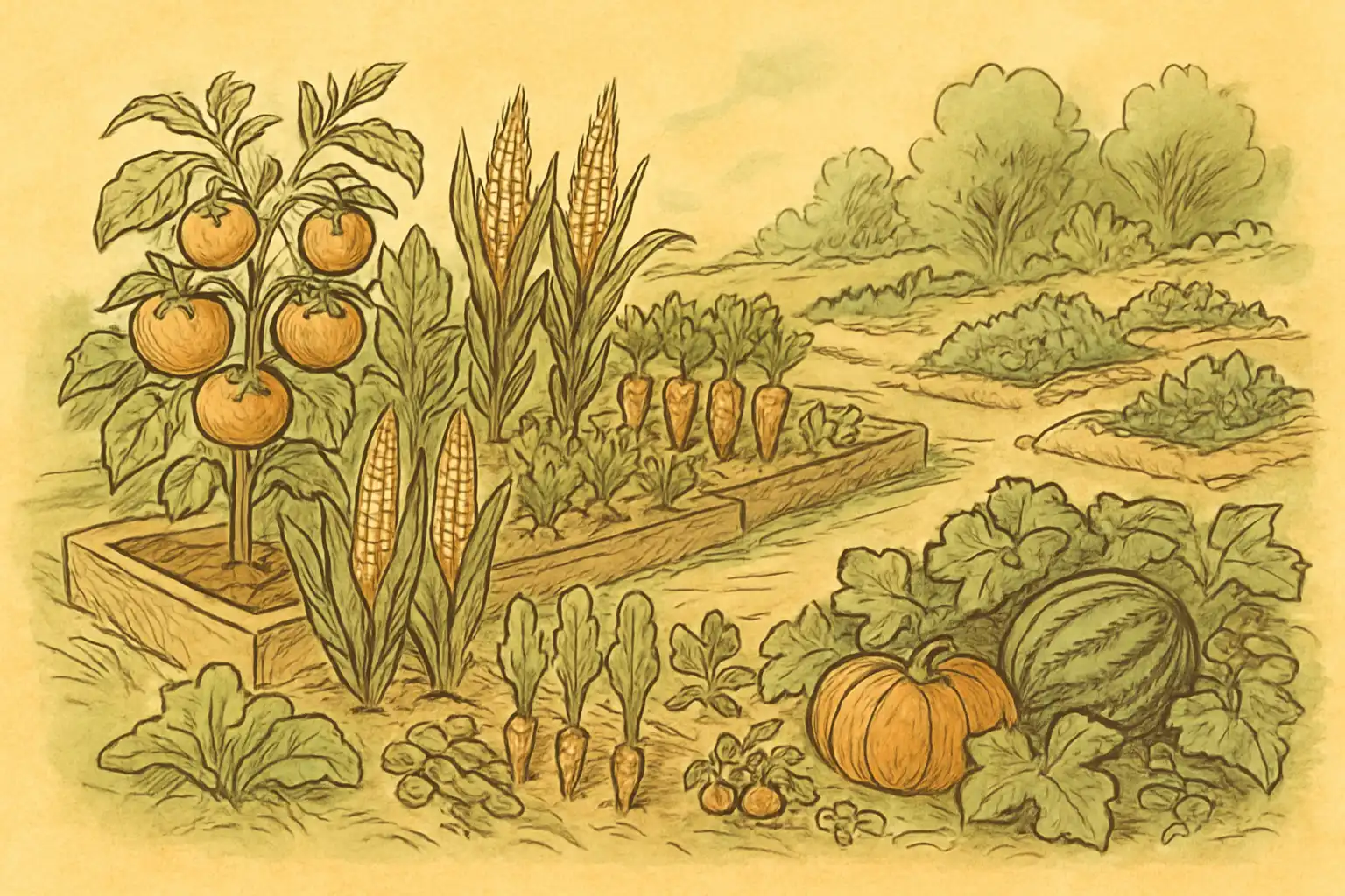 Il granturco dolce ama il calore e si semina quando la stagione è ormai sicura. Cresce meglio se coltivato in più file vicine, così da favorire una buona impollinazione. Le pannocchie maturano nel giro di due o tre mesi e si staccano con un movimento deciso verso il basso. I ravanelli, al contrario, sono tra gli ortaggi più rapidi e soddisfacenti: richiedono un terreno soffice e un’irrigazione costante, perché se si seccano diventano duri e piccanti. Anche la raccolta deve essere tempestiva, perché maturano molto in fretta.