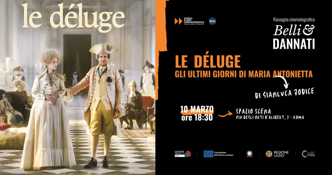 Martedì 10 marzo alle ore 18:30 lo Spazio Scena di Roma ospiterà un nuovo appuntamento della rassegna Belli&Dannati, promossa dalla Scuola d’Arte Cinematografica Gian Maria Volonté. Al centro dell’incontro ci sarà la proiezione del film “Le Déluge – Gli ultimi giorni di Maria Antonietta” (2024) di Gianluca Jodice, seguita da un dialogo tra il regista e il critico cinematografico Boris Sollazzo. L’ingresso all’evento è libero.